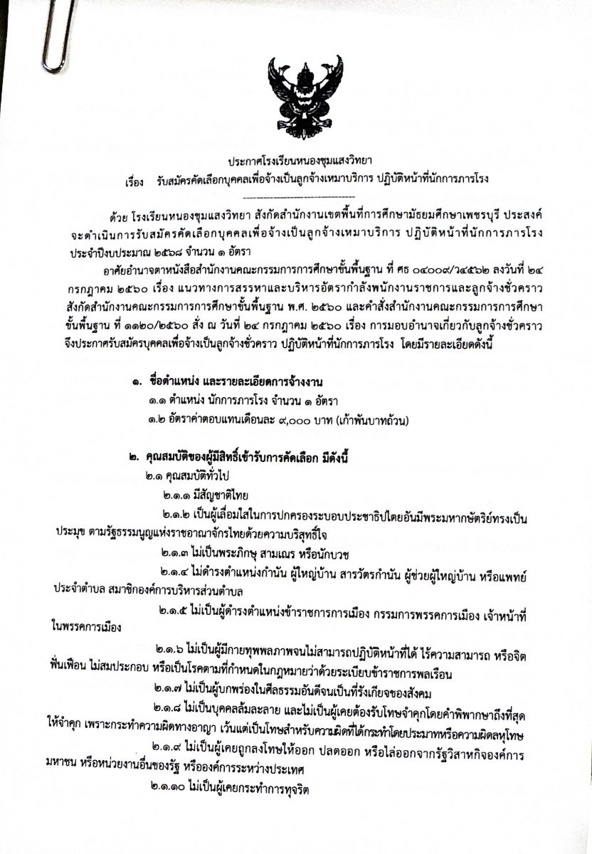 รับสมัครคัดเลือกบุคคลเพื่อจ้างเป็นลูกจ้างเหมาบริการ ปฏิบัติหน้าที่นักการภารโรง