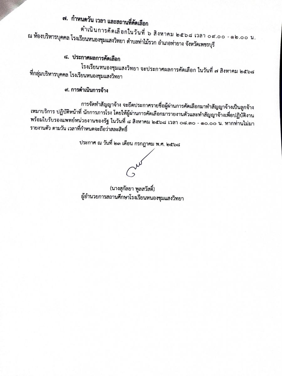 ประกาศจากโรงเรียนหนองชุมแสงวิทยา เรื่องการเปิดประมูลร้านค้าสวัสดิการโรงเรียน ประจำปีการศึกษา 2568-2569